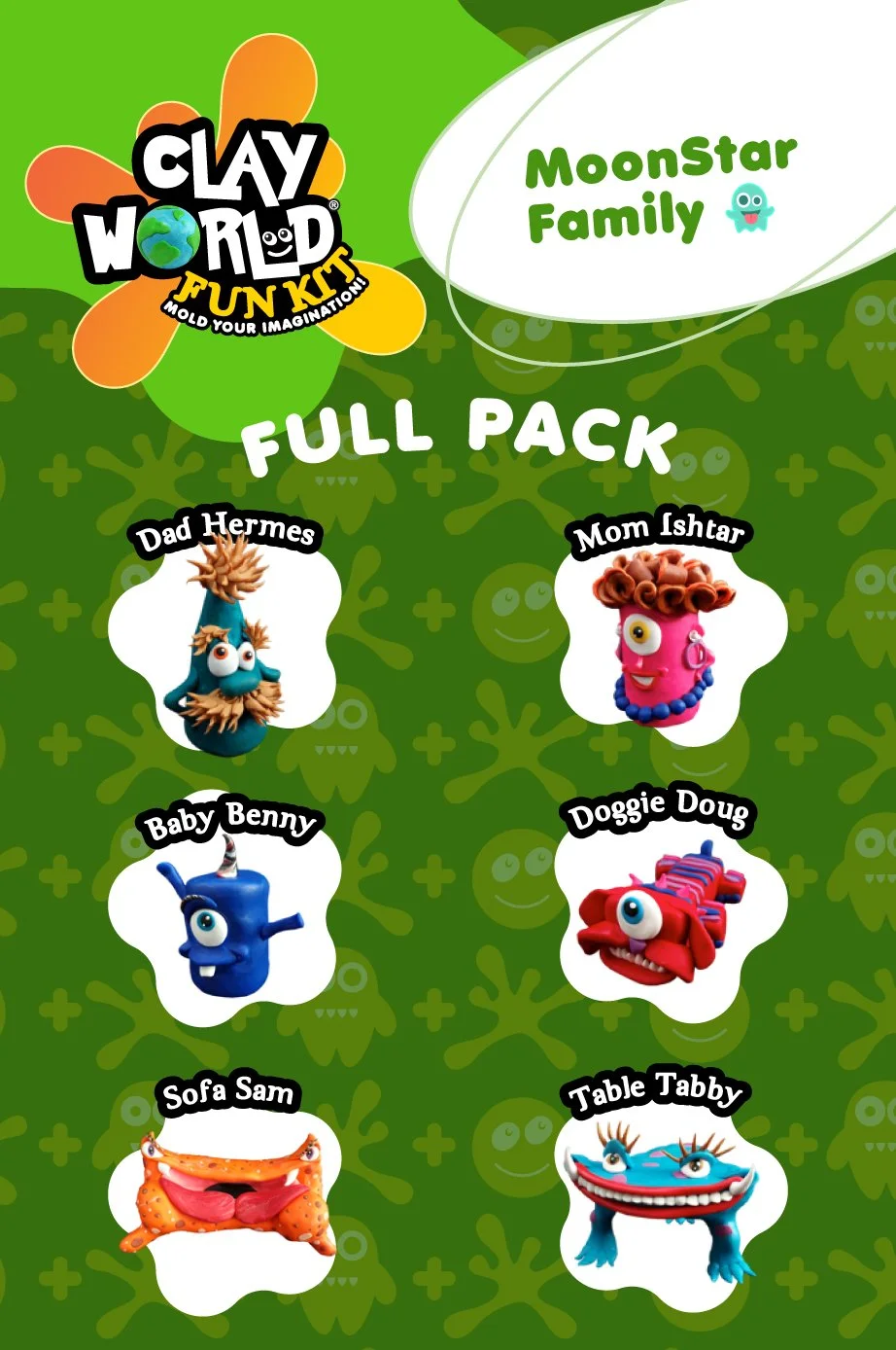 The Clay World MoonStar Family Kit includes 6 out-of-this-world characters to sculpt and bring to life!